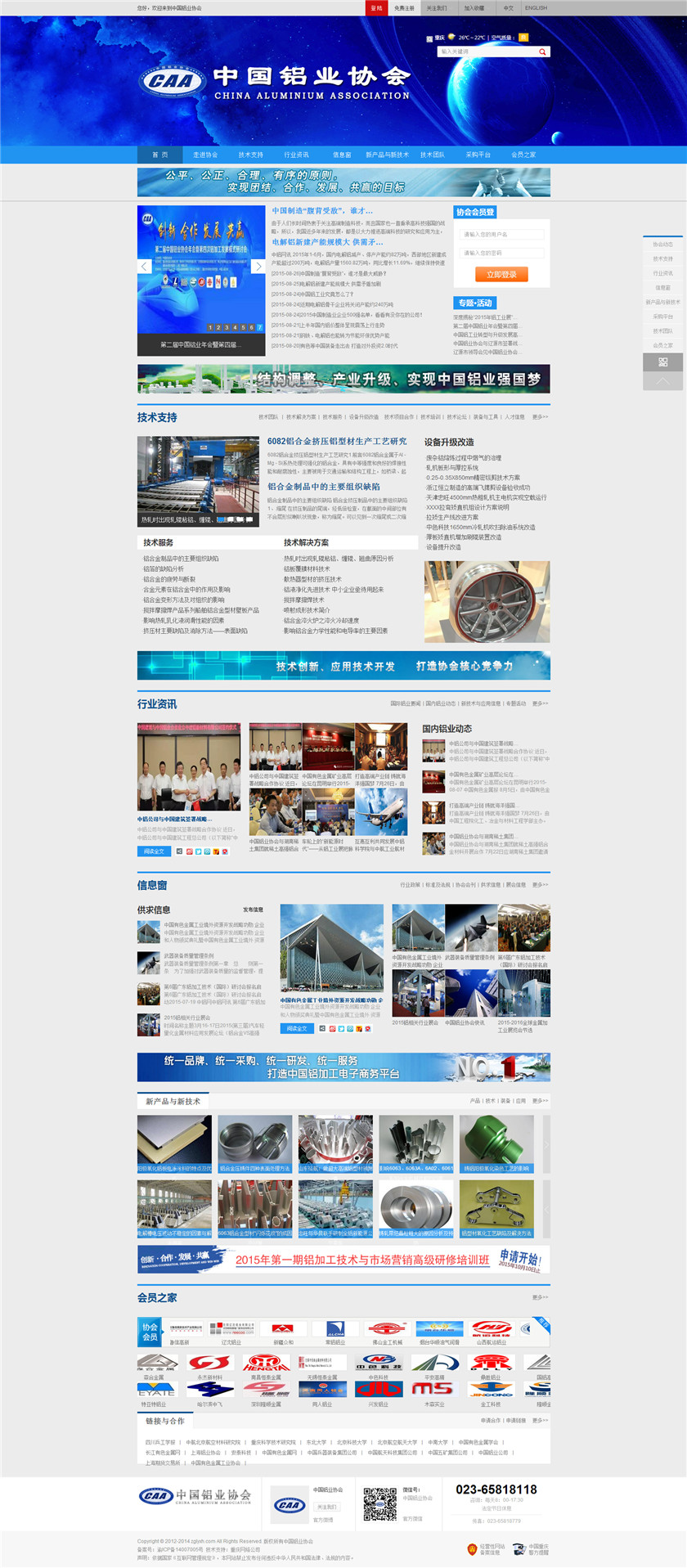Project Description 中国铝业协会是由中国国内主要从事铝合金铸造、板、带、箔、管、棒、型材、锻件等企业组成的行业协会组织,协会由国内具有一定规模和影响力的企业发起,已有三百多家会员企业,目前还有很多企业踊跃希望加入,协会现有会员企业年销售额1000多亿元人民币,协会会员企业分布在国内华东、华南、西南、环渤海、东北、胶东半岛等中国经济活跃地区;产品涵盖航空航天、兵器装... Official website address 阿坝http://www.caa2014.com I want to share