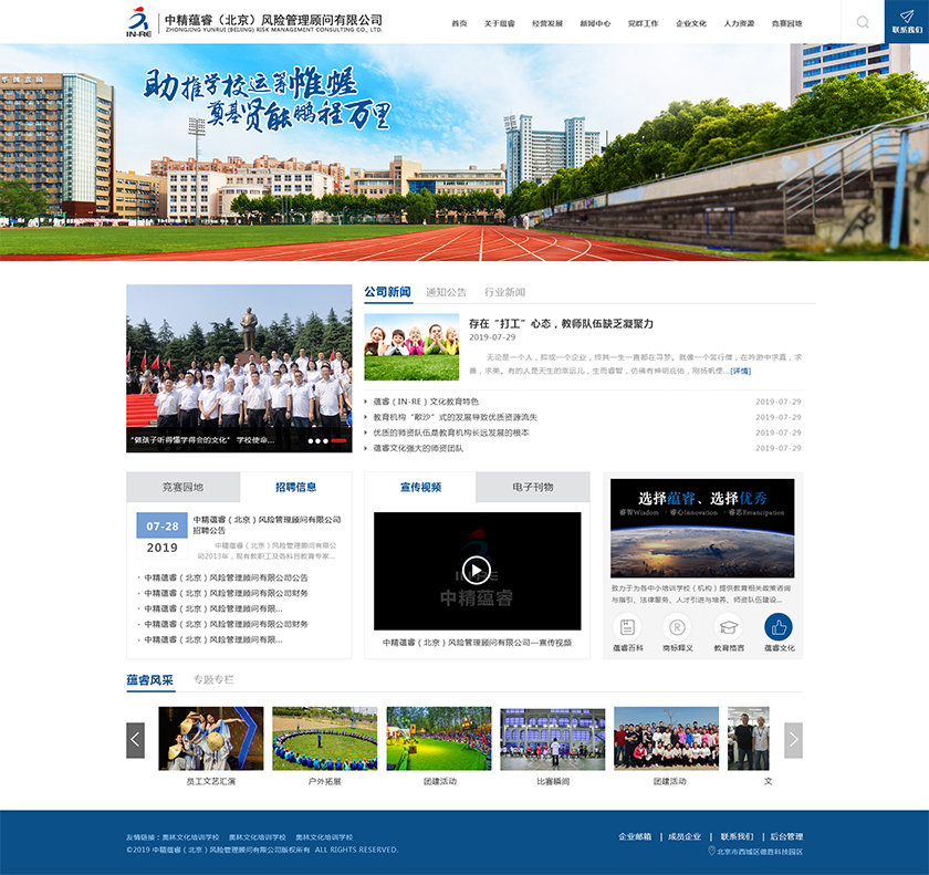 Project Description 中精蕴睿(北京)风险管理顾问有限公司2013年,现有教职工及各科目教育专家80多人,致力于为各中小培训学校(机构) 提供教育相关政策咨询与指引、法律服务、人才引进与培养、师资队伍建设与培训、教学教研与学科创新、市场营销企划、文化 理念塑造与品牌输出的专业化教育管理全方位的综合服务。 Official website address 阿坝http://in-re.com/ I want to share